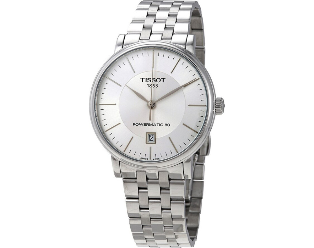 Mechaninis Vyras Rankinis laikrodis Tissot T122.407.11.031.00 su Nerūdijantis plienas dėklu, 40 mm skersmens, Mineralas su safyru stiklas, Sidabras ciferblatu ir Sidabras Nerūdijantis plienas apyranke.