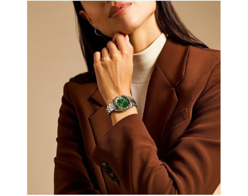 Kvarcs Sieviete Rokas pulkstenis Fossil ES5388 ar Nerūsējošais tērauds korpusu, ar diametru 32 mm, Minerāls stikls, Zaļš ciparnīcu un Divu toņu Nerūsējošais tērauds siksnu.