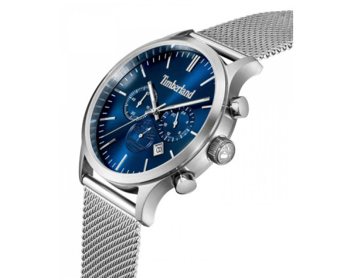 Kvarcs Cilvēks Rokas pulkstenis Timberland TDWGI0068401 ar Nerūsējošais tērauds korpusu, ar diametru 45 mm, Minerāls stikls, Zils ciparnīcu un Sudrabs Milānas krekls siksnu.