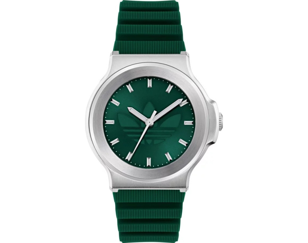 Kvarcs Unisex Rokas pulkstenis Adidas AOFH25501 ar Nerūsējošais tērauds korpusu, ar diametru 41 mm, Minerāls stikls, Zaļš ciparnīcu un Zaļš Silikona siksnu.