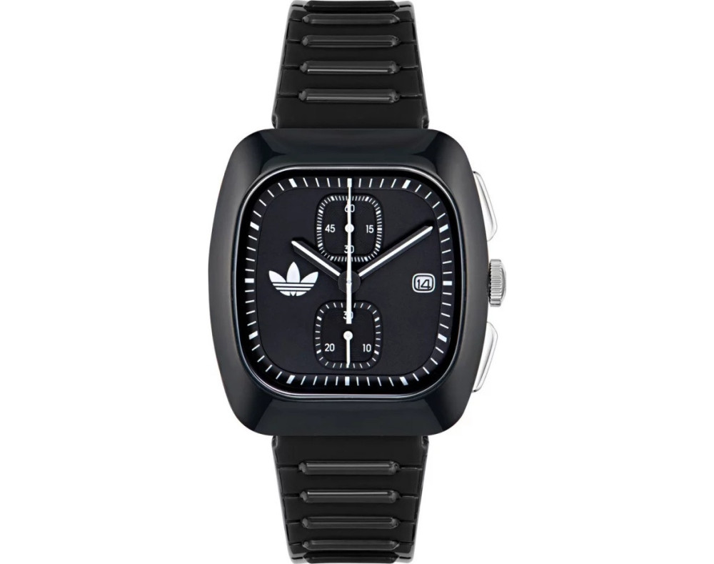 Kvarcs Unisex Rokas pulkstenis Adidas AOSY24533 ar Keramikas korpusu, ar diametru 39 mm, Minerāls stikls, Melns ciparnīcu un Melns Sveķi siksnu.