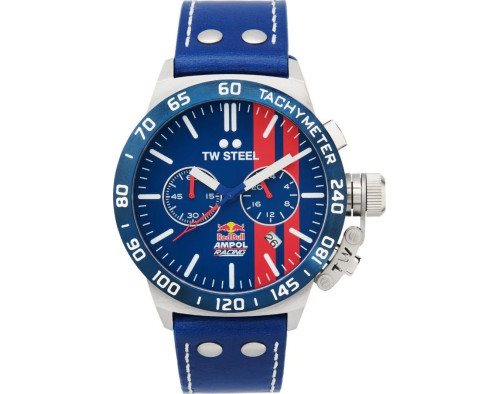 Kvarcs Cilvēks Rokas pulkstenis TW Steel TWCS122 ar Nerūsējošais tērauds korpusu, ar diametru 45 mm, Minerāls ar safīru apstrādi stikls, Zils ciparnīcu un Zils Āda siksnu.