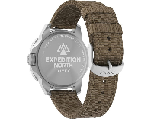 Kvarcs Cilvēks Rokas pulkstenis Timex TW2V62400 ar Nerūsējošais tērauds korpusu, ar diametru 42 mm, Minerāls stikls, Brūns ciparnīcu un Bēšs Audu siksnu.