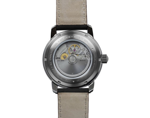 Mehānisks Cilvēks Rokas pulkstenis Zeppelin 8468-1 ar Nerūsējošais tērauds korpusu, ar diametru 42 mm, Minerāls K1 stikls, Pelēks ciparnīcu un Melns Āda siksnu.