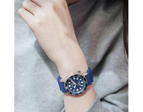 Kvarcs Sieviete Rokas pulkstenis Citizen EO2021-05L ar Nerūsējošais tērauds korpusu, ar diametru 37 mm, Minerāls stikls, Zils ciparnīcu un Zils Dzēšgumija siksnu.