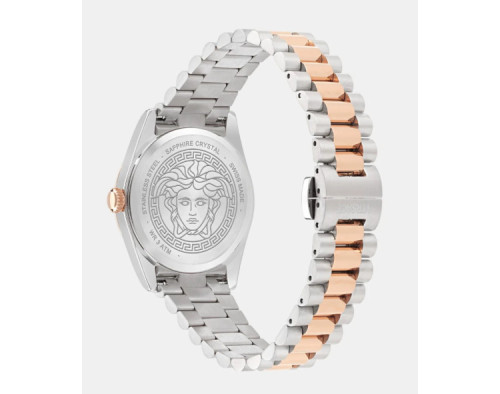 Кварц Женщина Наручные часы Versace VE0E00525, корпус Нержавеющая сталь, диаметр 32 mm, Минерал с обработкой сапфиром стекло, Серебро циферблат и Две тонны Нержавеющая сталь ремешок.