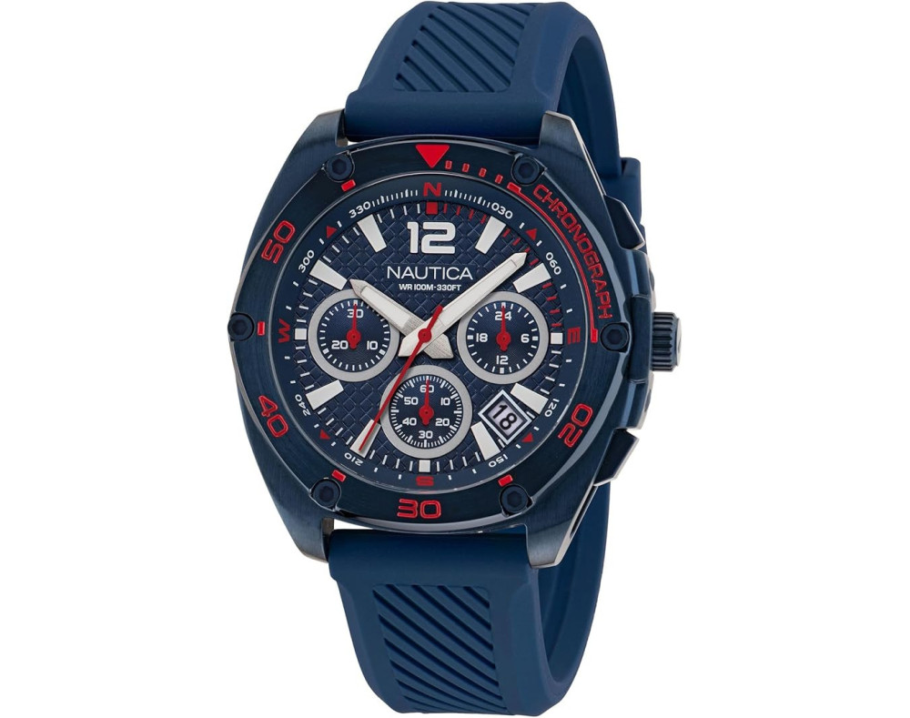 Кварц Мужчина Наручные часы Nautica NAPTCS303, корпус Нержавеющая сталь, диаметр 44 mm, Минеральная стекло, Синий циферблат и Синий Силикон ремешок.
