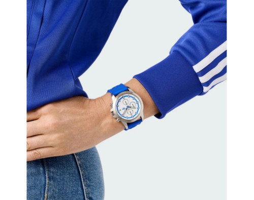 Кварц унисекс Наручные часы Adidas AOFH24520, корпус Нержавеющая сталь, диаметр 43 mm, Минеральная стекло, Белый циферблат и Синий Силикон ремешок.