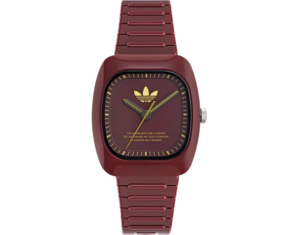 Кварц унисекс Наручные часы Adidas AOSY24028, корпус Керамический, диаметр 37 mm, Минеральная стекло, Красный циферблат и Красный Смола ремешок.