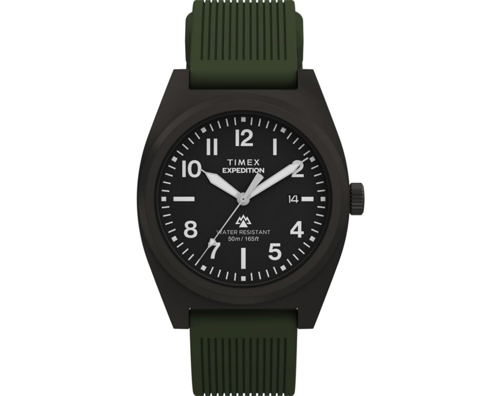 Кварц Мужчина Наручные часы Timex TW2Y18000UK, корпус Нержавеющая сталь, диаметр 39 mm, Минеральная стекло, Черный циферблат и Зеленый Силикон ремешок.