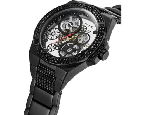 Кварц Мужчина Наручные часы Guess GW0323G3, корпус Нержавеющая сталь, диаметр 45 mm, Минеральная стекло, Прозрачный циферблат и Черный Нержавеющая сталь ремешок.
