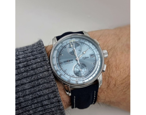 Кварц Мужчина Наручные часы Zeppelin 8670-4, корпус Нержавеющая сталь, диаметр 42 mm, Минеральная K1 стекло, Голубое небо циферблат и Синий Кожа ремешок.