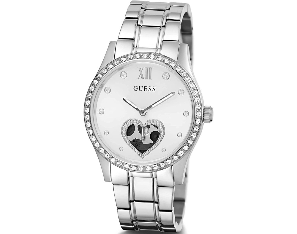 Armbanduhr Guess Be Loved GW0380L1 für Damen mit Quarzwerk, Uhrengehäuse aus Edelstahl mit einem Durchmesser von 38 mm, Ziffernblatt Silber und Uhrenarmband aus Edelstahl in der Farbe Silber.