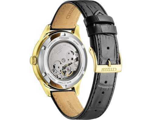 Armbanduhr Citizen NY4059-09A für Herren mit Mechanisch, Uhrengehäuse aus Edelstahl mit einem Durchmesser von 40 mm, Ziffernblatt Weiß und Uhrenarmband aus Leder in der Farbe Schwarz.