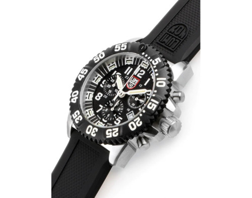 Armbanduhr Luminox Seal Steel Colormark XS.3181.F für Herren mit Quarzwerk, Uhrengehäuse aus Edelstahl mit einem Durchmesser von 44 mm, Ziffernblatt Schwarz und Uhrenarmband aus Kautschuk in der Farbe Schwarz.