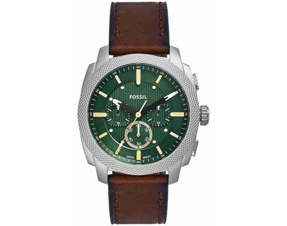 Reloj de pulsera Fossil Machine FS6100 para Hombre con movimento de Cuarzo, con caja de Acero inoxidable con diàmetro de 44 mm, con cuadrante Verde y correa en Piel, color Marrón.
