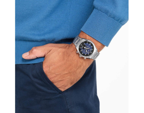 Reloj de pulsera Citizen Eco-Drive Super-Titanium BY1010-81L para Hombre con movimento de Cuarzo, con caja de Titanio con diàmetro de 43 mm, con cuadrante Azul y correa en Titanio, color Plateado.