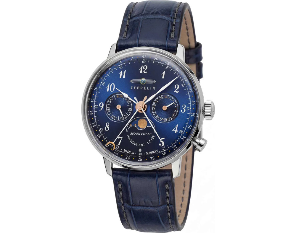 Reloj de pulsera Zeppelin LZ129 Hindenburg 7037-3 para Mujer con movimento de Cuarzo, con caja de Acero inoxidable con diàmetro de 36 mm, con cuadrante Azul y correa en Piel, color Azul.