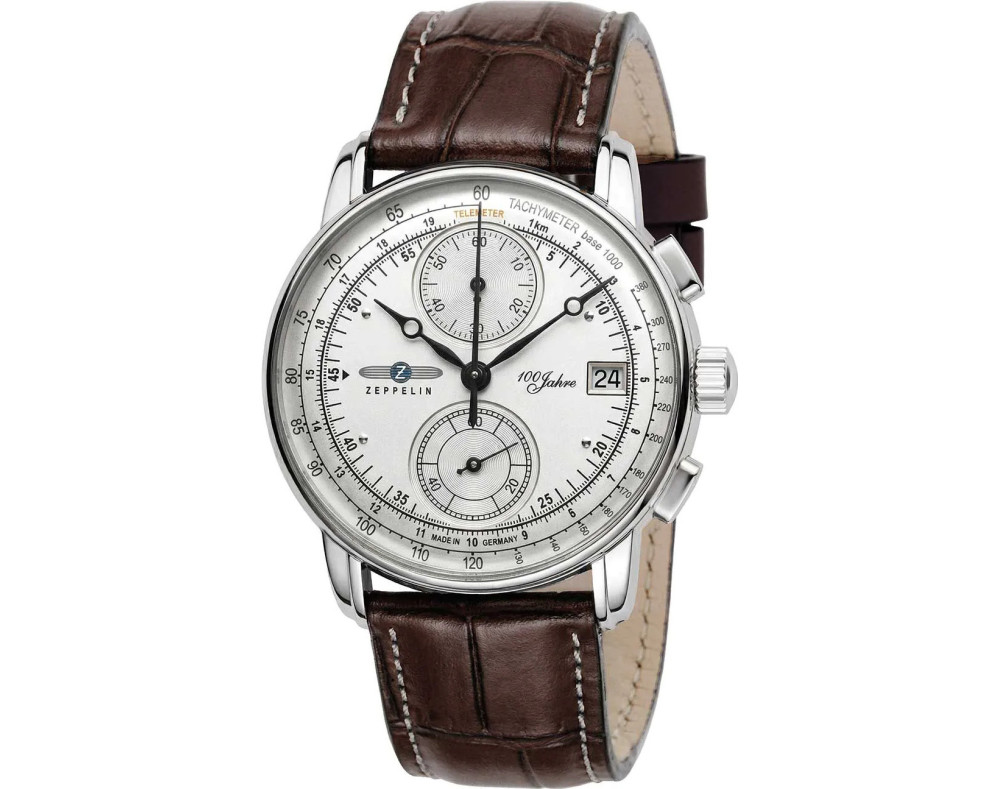 Reloj de pulsera Zeppelin 100 Years 8670-1 para Hombre con movimento de Cuarzo, con caja de Acero inoxidable con diàmetro de 42 mm, con cuadrante Plateado y correa en Piel, color Marrón.