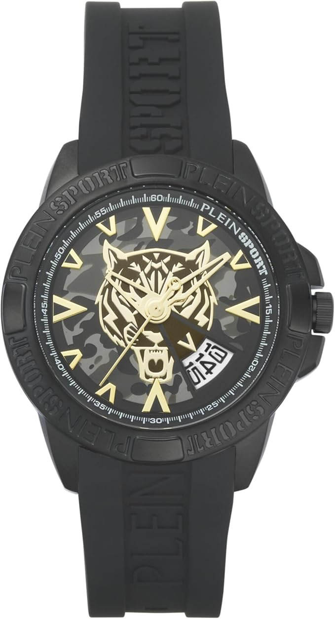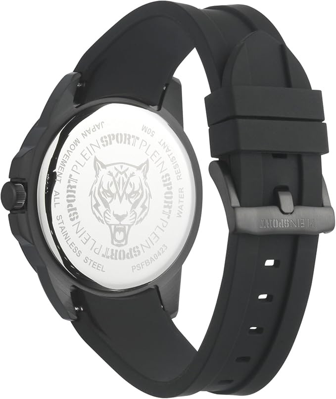 Kvarts Mees Käekell Plein Sport PSFBA0423, Roostevaba teras korpusega, läbimõõduga 44 mm, Mineraal klaasist, Must sihverplaadi ja Must Silikoon rihm.
