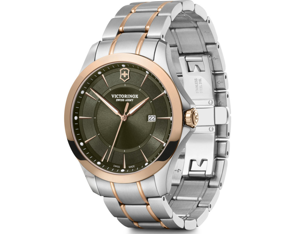Kvarts Mees Käekell Victorinox 241913, Roostevaba teras korpusega, läbimõõduga 40 mm, Safiiri töötlusega mineraal klaasist, Roheline sihverplaadi ja Kahetooniline Roostevaba teras rihm.