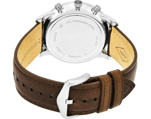 Montre bracelet Fossil Neutra FS5380 pour Homme à Quartz, avec une boîtier de Acier inoxydable d’un diamètre de 44 mm, avec un cadran Beige et avec un bracelet de Cuir en couleur Marron.