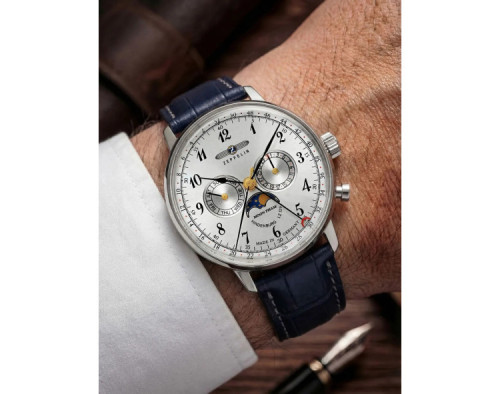 Montre bracelet Zeppelin LZ129 Hindenburg 7036-1 pour Homme à Quartz, avec une boîtier de Acier inoxydable d’un diamètre de 40 mm, avec un cadran Argent et avec un bracelet de Cuir en couleur Noir.