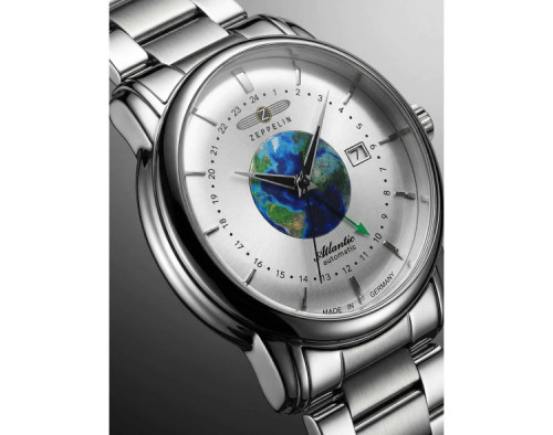 Montre bracelet Zeppelin Atlantic 8468MB-1 pour Homme à Mécanique, avec une boîtier de Acier inoxydable d’un diamètre de 42 mm, avec un cadran Argent et avec un bracelet de Acier inoxydable en couleur Argent.
