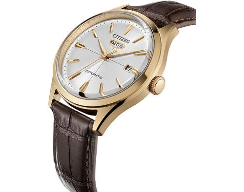 Montre bracelet Citizen NH8393-05A pour Homme à Mécanique, avec une boîtier de Acier inoxydable d’un diamètre de 40 mm, avec un cadran Blanc et avec un bracelet de Cuir en couleur Marron.