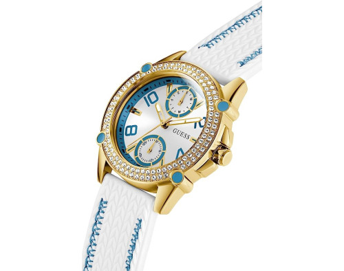 Montre bracelet Guess Sporty Spice GW0554L2 pour Femme à Quartz, avec une boîtier de Acier inoxydable d’un diamètre de 38 mm, avec un cadran Argent et avec un bracelet de Silicone en couleur Blanc.