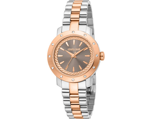 Quartz Womens Wristwatch Roberto Cavalli RC5L120M0075 with Stainless steel case, with diameter 24 mm, Silver dial and Rose gold Stainless steel band.