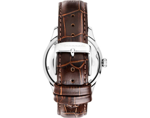 Quartz Man Wristwatch Maserati Sorpasso R8821124002 with Stainless steel case, with diameter 42 mm, White dial and Brown Leather band.