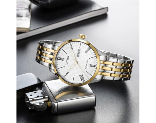 Mechanical Man Wristwatch Citizen NH8354-58A with Stainless steel case, with diameter 40 mm, White dial and Two-tone Stainless steel band.