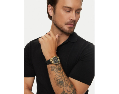Quartz Man Wristwatch Guess Legend GW0564G1 with Stainless steel case, with diameter 44 mm, Gold dial and Black Silicon band.