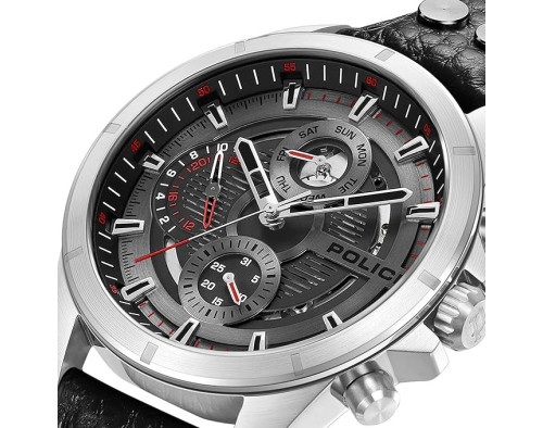 Quartz Man Wristwatch Police Malawi PEWJF0004601 with Stainless steel case, with diameter 45 mm, Black dial and Black Leather band.