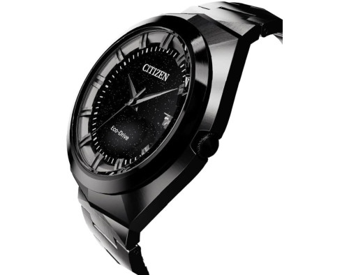 Quartz Man Wristwatch Citizen Eco Drive BN1015-52E with Stainless steel case, with diameter 42 mm, Black dial and Black Stainless steel band.