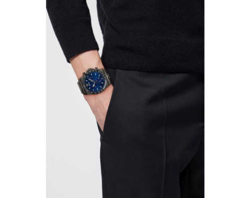 Orologio da polso Versace Greca Chrono Wave VE0H00625 Cronografo Uomo con movimento Al quarzo, cassa in Acciaio inossidabile di diametro 43 mm, quadrante Blu, vetro Minerale con trattamento Zaffiro e cinturino in Acciaio inossidabile di colore Grigio.