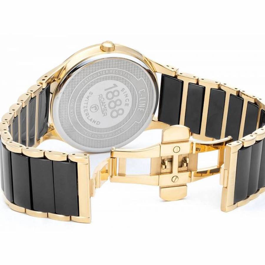 Orologio da polso Roamer C-Line 658833-48-35-61 Analogico Uomo con movimento Al quarzo, cassa in Acciaio inossidabile di diametro 40 mm, quadrante Oro, vetro Minerale con trattamento Zaffiro e cinturino in Ceramica di colore Nero.