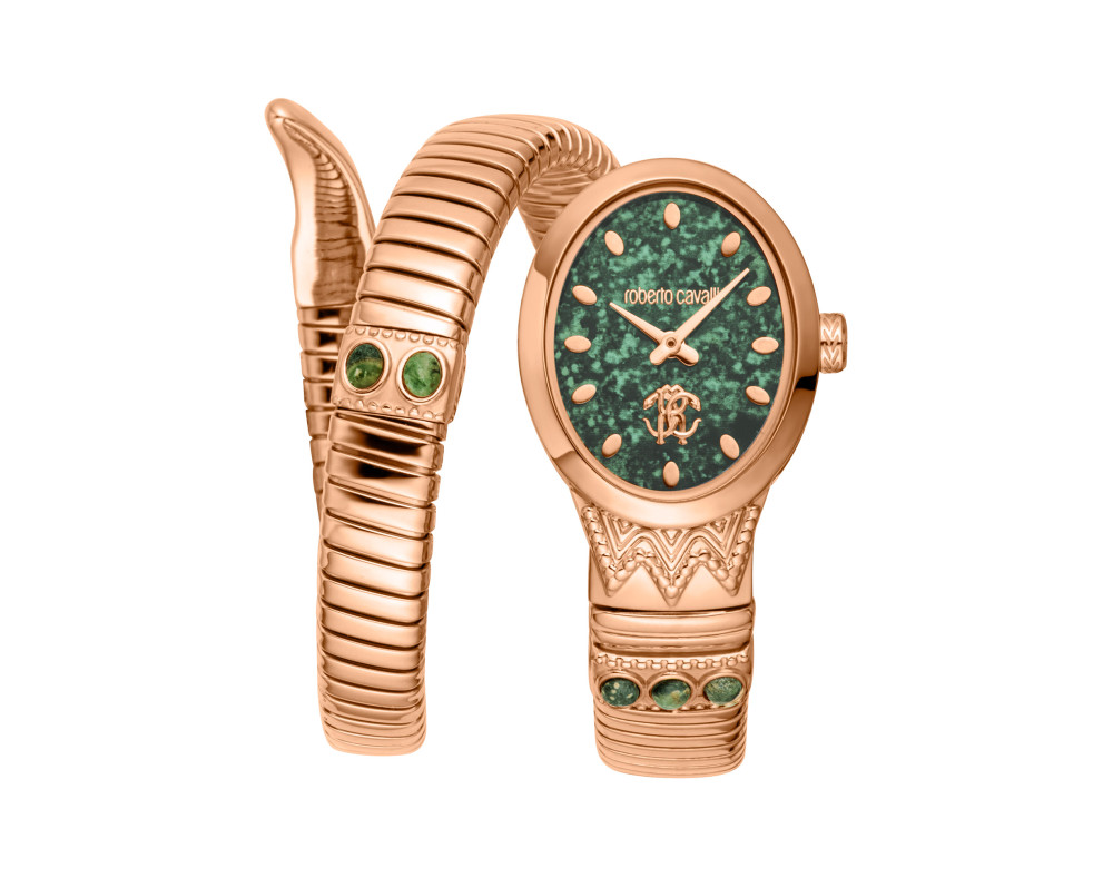 Orologio da polso Roberto Cavalli RC5L104M0045 Analogico Donna con movimento Al quarzo, cassa in Acciaio inossidabile di diametro 23 mm, quadrante Verde, vetro Minerale e cinturino in Acciaio inossidabile di colore Oro rosa.