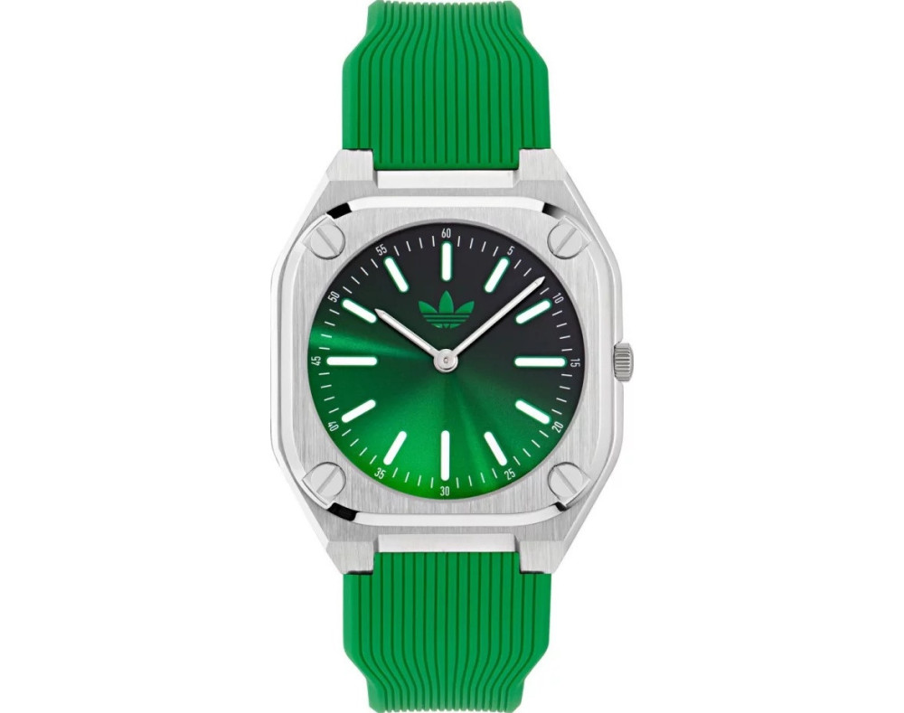 Orologio da polso Adidas City Tech Thin AOFH24505 Analogico Unisex con movimento Al quarzo, cassa in Acciaio inossidabile di diametro 39 mm, quadrante Verde, vetro Minerale e cinturino in Silicone di colore Verde.