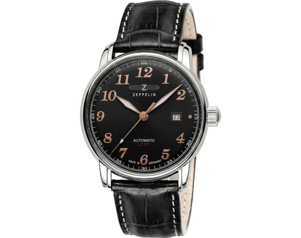 Orologio da polso Zeppelin LZ127 Graf 7656-2 Analogico Uomo con movimento Meccanico, cassa in Acciaio inossidabile di diametro 40 mm, quadrante Nero, vetro Minerale K1 e cinturino in Pelle di colore Nero.