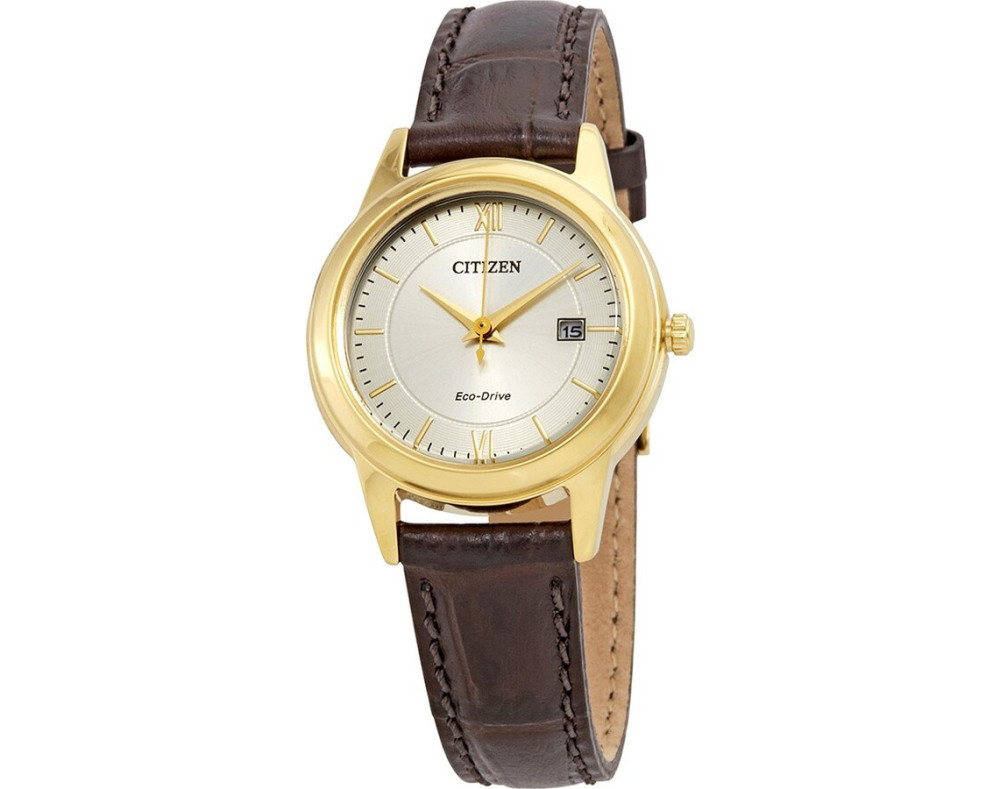 Orologio da polso Citizen Eco-Drive FE1082-05A Analogico Donna con movimento Al quarzo, cassa in Acciaio inossidabile di diametro 28 mm, quadrante Argento, vetro Minerale e cinturino in Pelle di colore Marrone.
