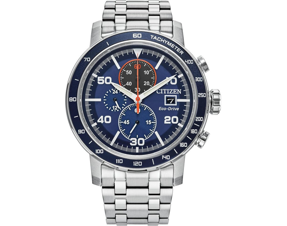 Orologio da polso Citizen Eco-Drive CA0850-59L Cronografo Uomo con movimento Al quarzo, cassa in Acciaio inossidabile di diametro 44 mm, quadrante Blu, vetro Minerale e cinturino in Acciaio inossidabile di colore Argento.