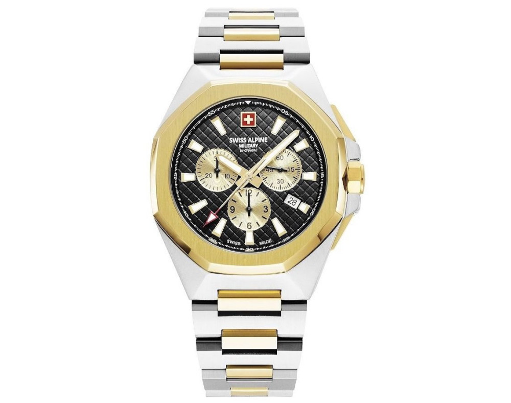 Kvarcs Cilvēks Rokas pulkstenis Swiss Alpine Military SAM7005.9147 ar Nerūsējošais tērauds korpusu, ar diametru 42 mm, Minerāls ar safīru apstrādi stikls, Melns ciparnīcu un Divu toņu Nerūsējošais tērauds siksnu.