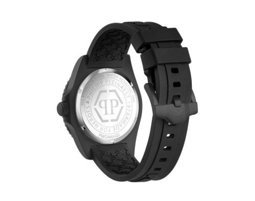 Kvarcs Cilvēks Rokas pulkstenis Philipp Plein PWOAA0422 ar Nerūsējošais tērauds korpusu, ar diametru 44 mm, Minerāls stikls, Melns ciparnīcu un Melns Silikona siksnu.