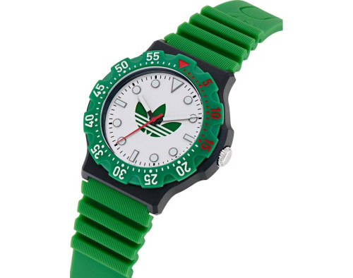 Kvarcs Unisex Rokas pulkstenis Adidas AOSY25512 ar Sveķi korpusu, ar diametru 40 mm, Minerāls stikls, Balts ciparnīcu un Zaļš Silikona siksnu.