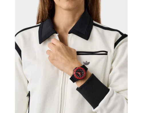 Кварц унисекс Наручные часы Adidas AOSY25514, корпус Смола, диаметр 40 mm, Минеральная стекло, Черный циферблат и Черный Силикон ремешок.