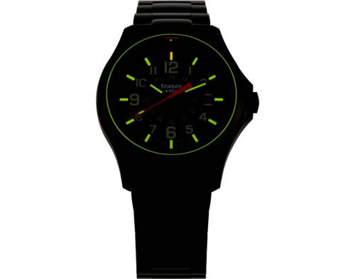 Кварц Мужчина Наручные часы Traser 111070, корпус Нержавеющая сталь, диаметр 42 mm, Минерал с обработкой сапфиром стекло, Синий циферблат и Черный Нержавеющая сталь ремешок.