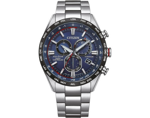 Кварц Мужчина Наручные часы Citizen AT2480-81E, корпус Титан, диаметр 43 mm, Минерал с обработкой сапфиром стекло, Черный циферблат и Серебро Титан ремешок.