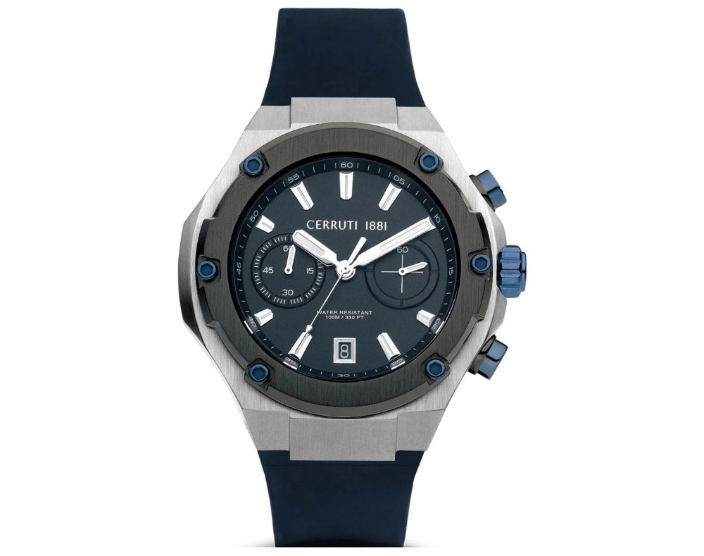 Кварц Мужчина Наручные часы Cerruti 1881 CIWGO2206107, корпус Нержавеющая сталь, диаметр 44 mm, Минеральная стекло, Синий циферблат и Синий Силикон ремешок.